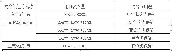 用于肉類、水果、蔬菜以及糧食保鮮的混合氣,品種規(guī)格較多:混合氣一般由二氧化碳、氮氣和氧氣等組成。其中二氧化碳對細菌雖無殺菌作用,但 具有抑制絲狀菌(霉菌)和嗜好氣菌發(fā)育的作用;氮氣有抗氧和防止細菌發(fā)育的作用;氧氣能使維生素和脂肪氧化,新鮮的食品和魚貝類的組織是具有活性的,它不 斷消耗氧,在無氧狀態(tài)下,肌肉色素的肌紅蛋白被還原呈暗色,即牛肉、魚類在沒有氧氣情況下,就無法起到保鮮作用。保鮮混合氣中還可加入少量環(huán)氧乙烷,以增 強對細菌的殺傷能力。 保鮮混合氣的品種較多,根據(jù)不同的保鮮對象,可以選取不同組分和不伺配比的混合氣。